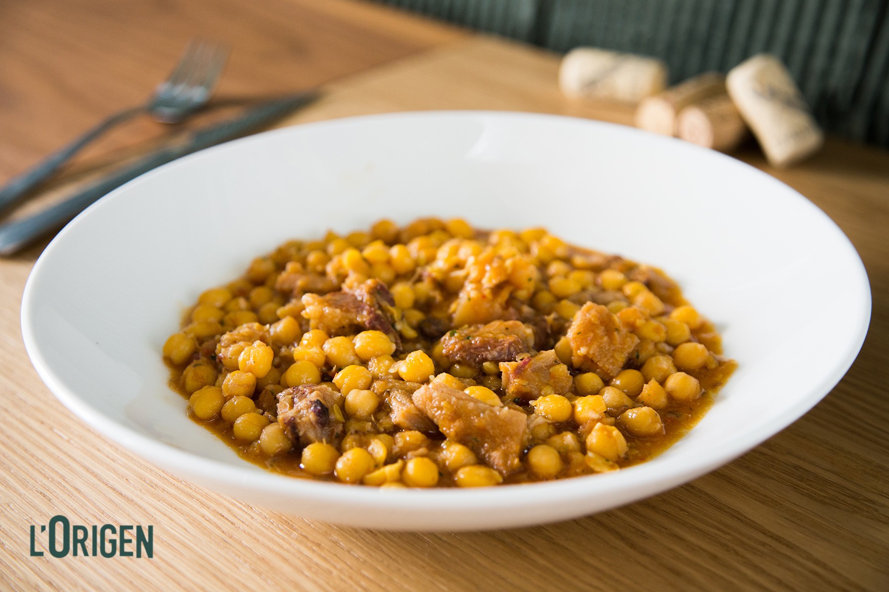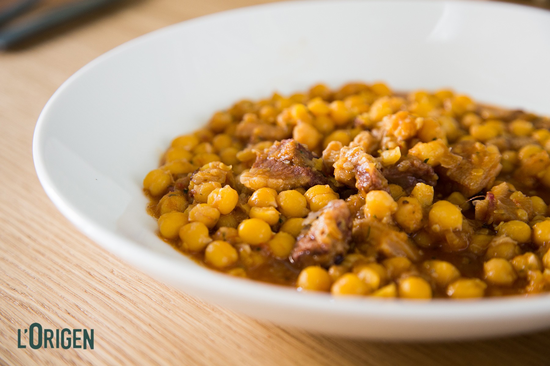 Cigrons estofats amb morro de porc